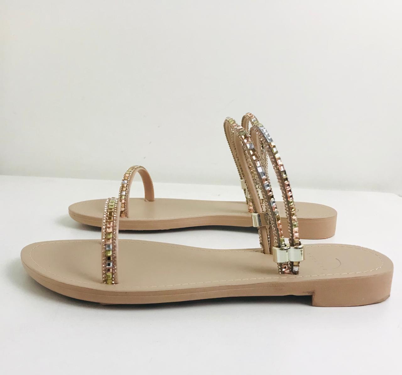 • Sandalia Rasteira Napa Aveia Strass 569-505 FZ Shoes
