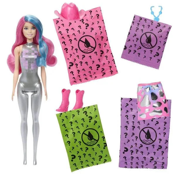 Contém: 1 boneca Barbie Color Reveal surpresa e acessórios.