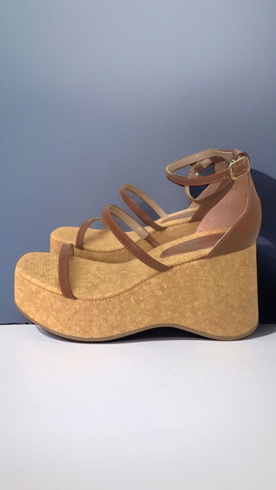 Sandalia Anabela Napa Caramelo Salto Cortiça Ref.M3379G – Bourtz
